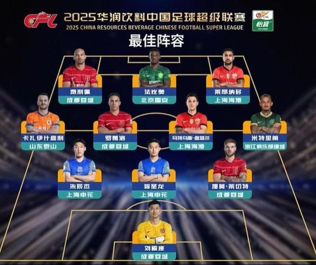 中超本赛季最好声势的评比后果也皆在合理规模。具体声势如下:刘殿座(门将);朱辰杰、蒋圣龙、莱切特(后卫);卡扎伊什维利、罗慕洛、维塔尔、米特里策(中场);费利佩、法比奥、莱昂纳多(时尚)。